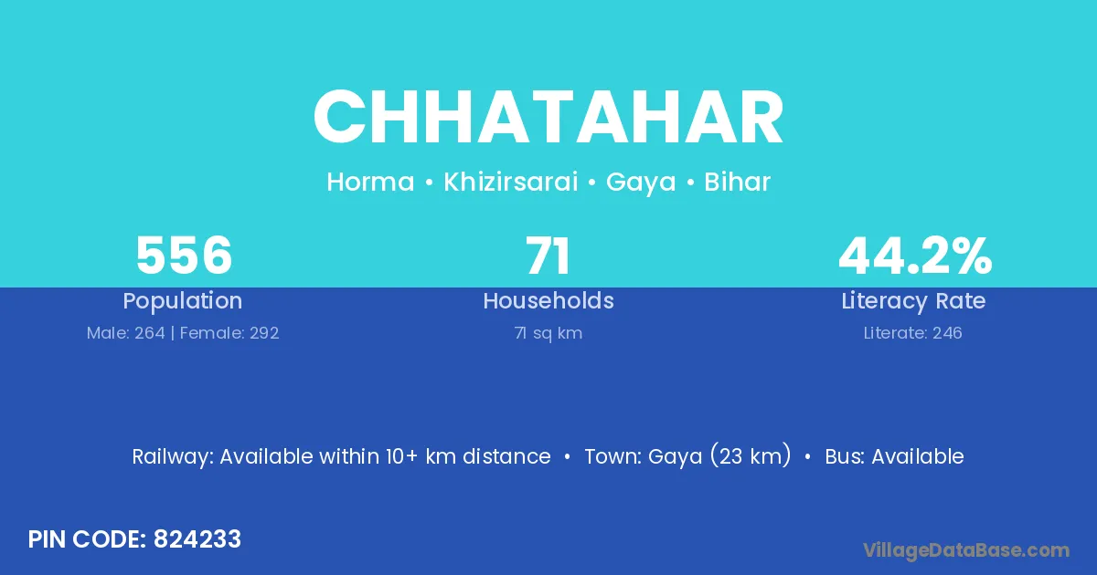 The literacy rate of Chhatahar village is 78.46%. Male literacy stands at 84.49% and female literacy at 72.73%.