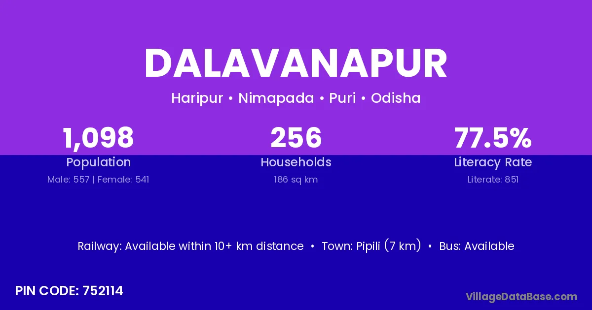 Pipili (7 km) is the nearest town to Dalavanapur village for major economic activities and is located approximately 7 km away.