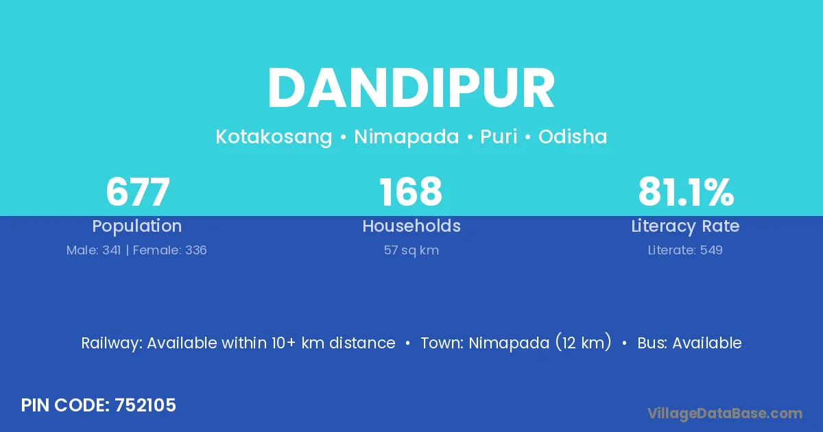 Nimapada (12 km) is the nearest town to Dandipur village for major economic activities and is located approximately 12 km away.