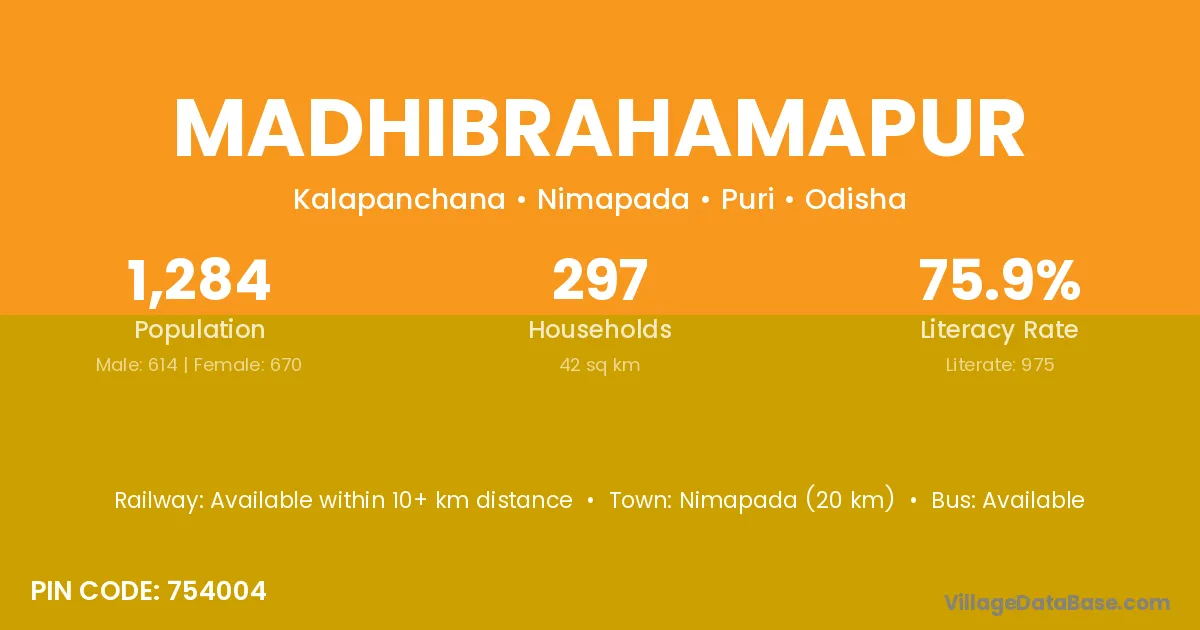 Nimapada (20 km) is the nearest town to Madhibrahamapur village for major economic activities and is located approximately 20 km away.