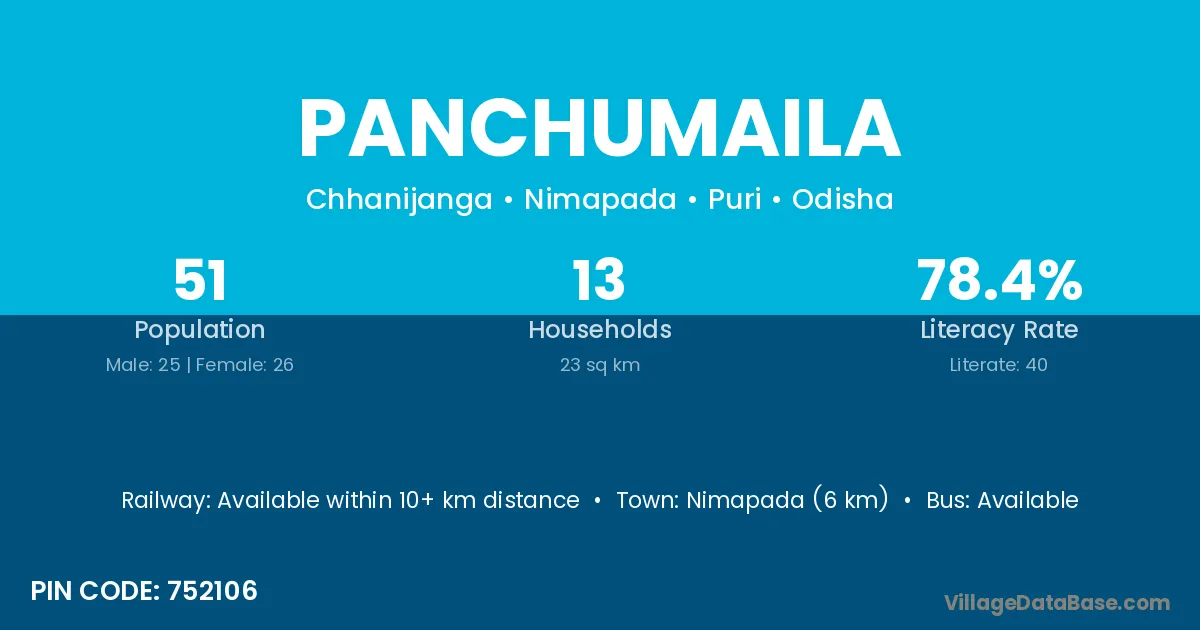 Nimapada (6 km) is the nearest town to Panchumaila village for major economic activities and is located approximately 6 km away.