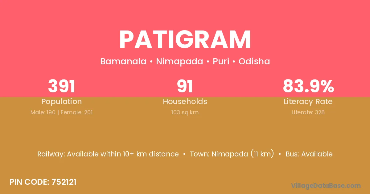 Nimapada (11 km) is the nearest town to Patigram village for major economic activities and is located approximately 11 km away.