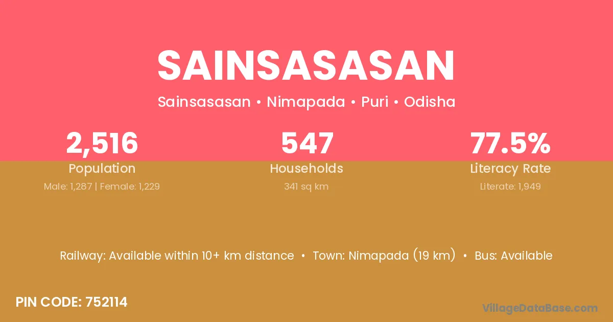 Nimapada (19 km) is the nearest town to Sainsasasan village for major economic activities and is located approximately 19 km away.