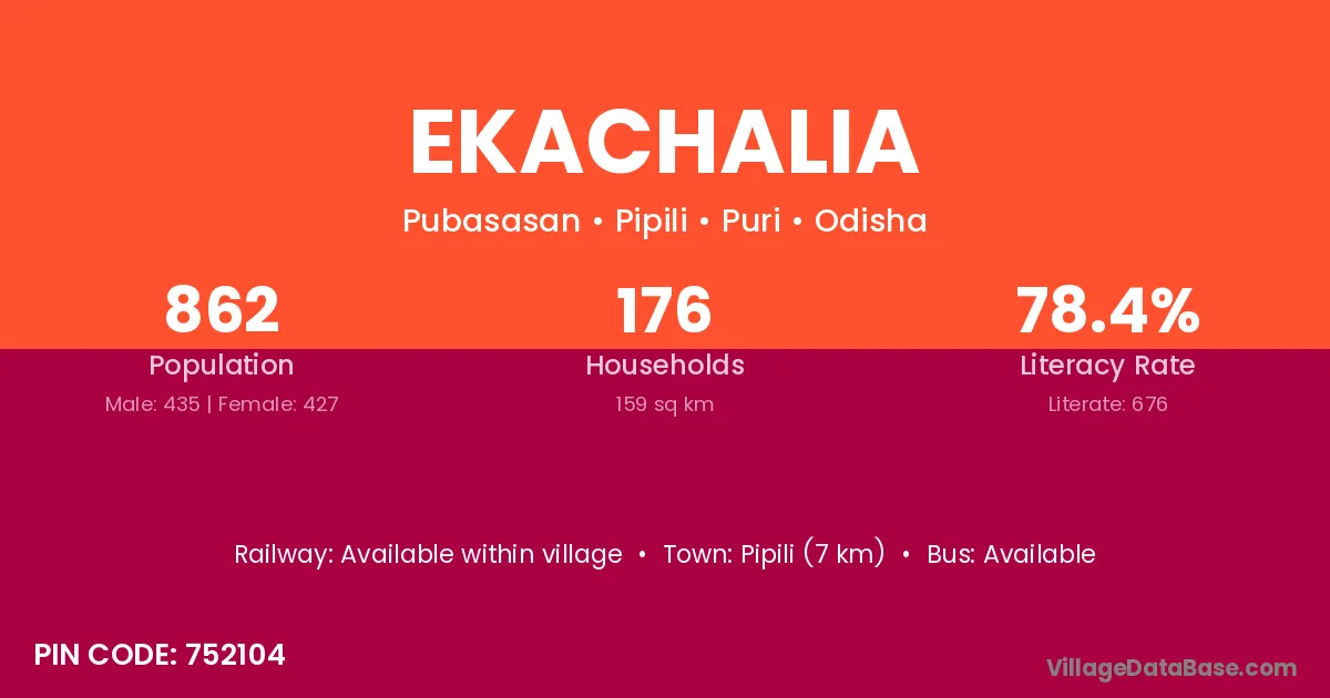 Pipili (7 km) is the nearest town to Ekachalia village for major economic activities and is located approximately 7 km away.