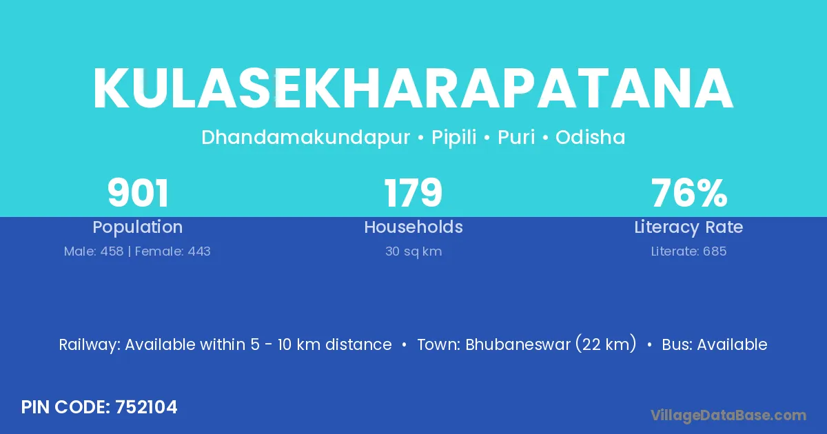 Bhubaneswar (22 km) is the nearest town to Kulasekharapatana village for major economic activities and is located approximately 22 km away.