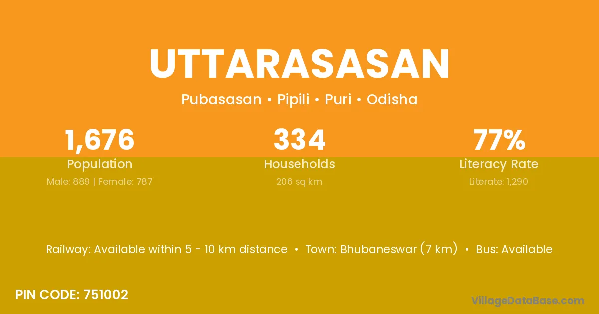 Bhubaneswar (7 km) is the nearest town to Uttarasasan village for major economic activities and is located approximately 7 km away.