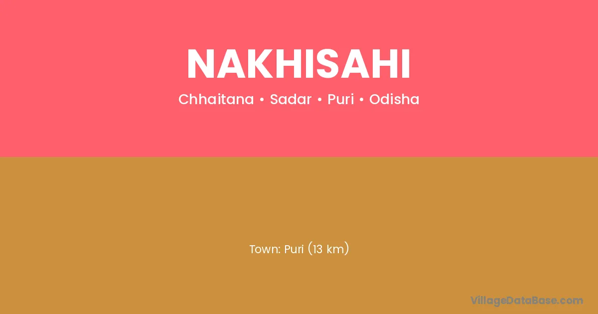 Nakhisahi village is located in the Sadar Tehsil of the Puri district in Odisha .