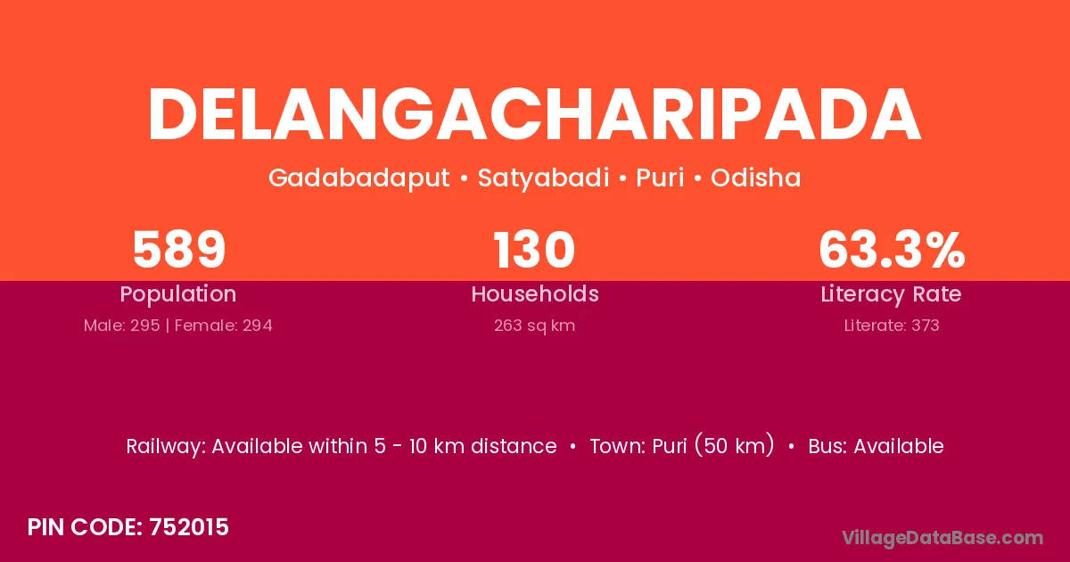 Puri (50 km) is the nearest town to Delangacharipada village for major economic activities and is located approximately 50 km away.