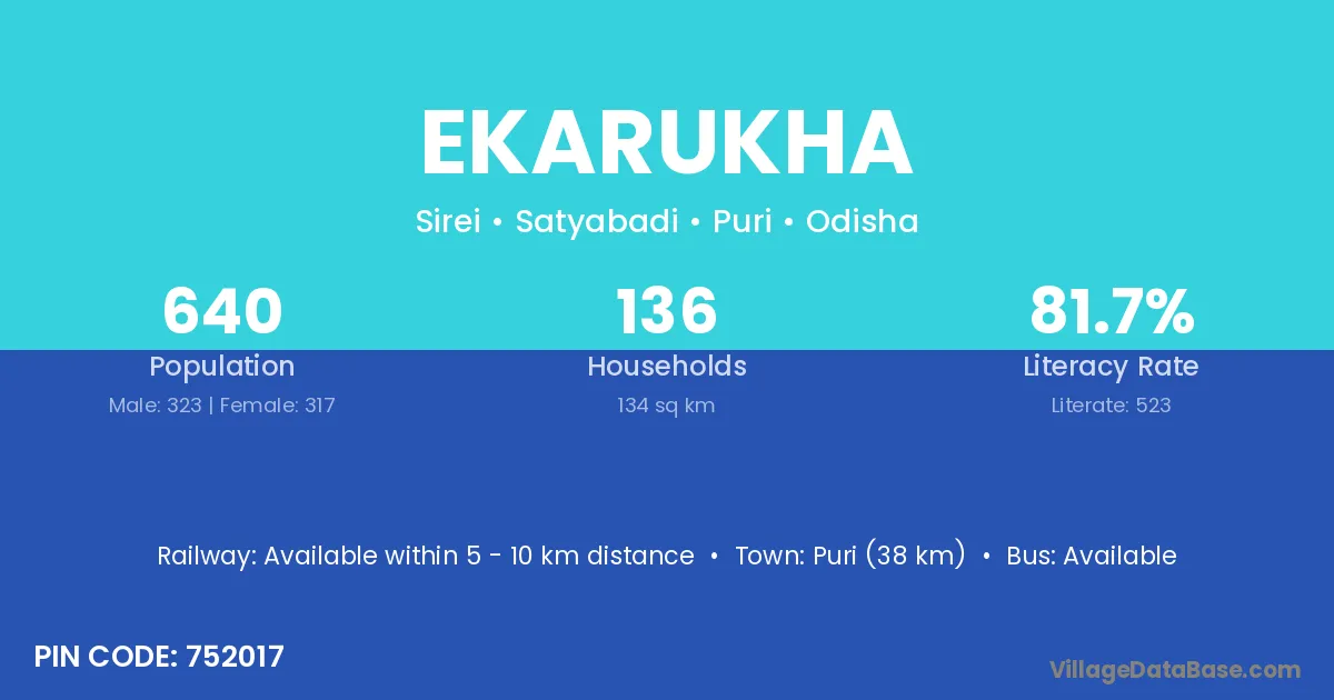 Puri (38 km) is the nearest town to Ekarukha village for major economic activities and is located approximately 38 km away.