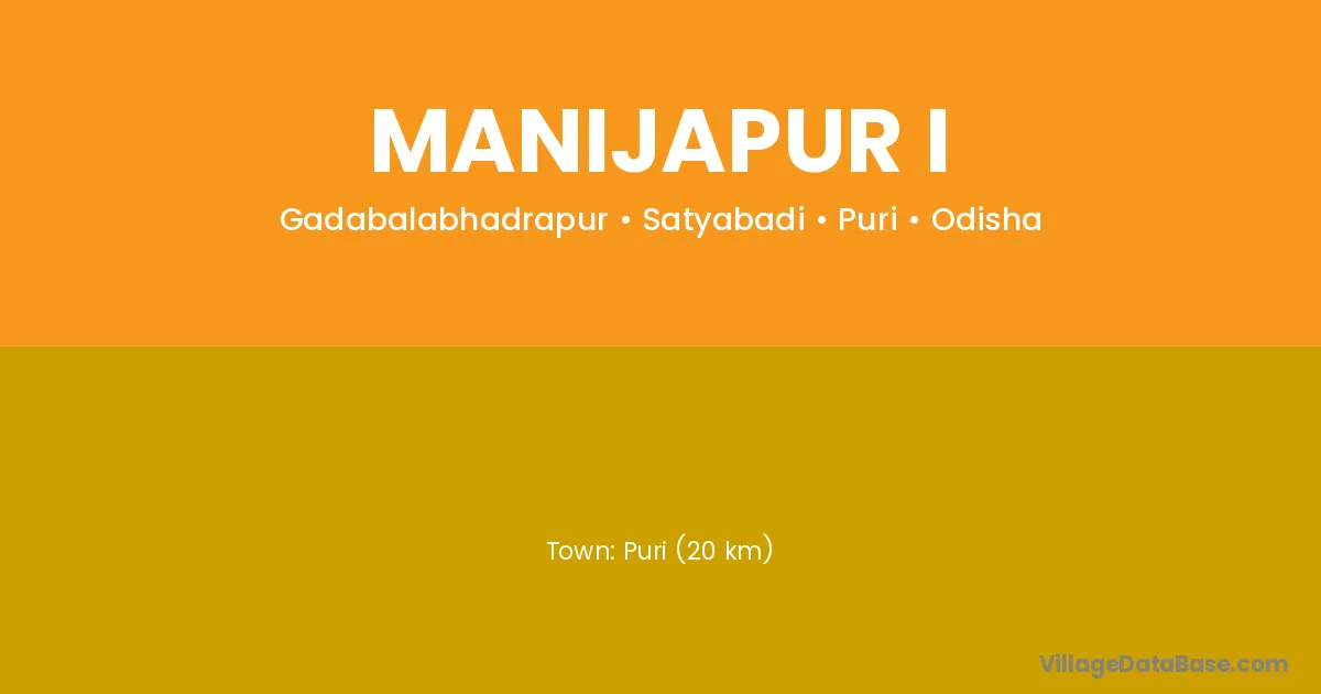 Manijapur I village is located in the Satyabadi Tehsil of the Puri district in Odisha .