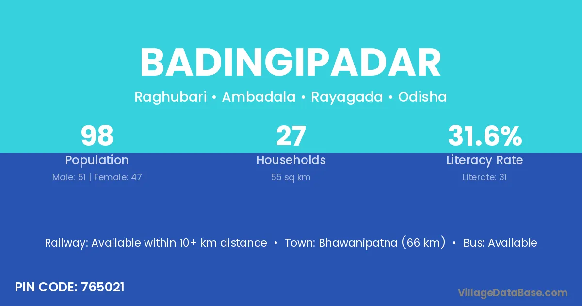Badingipadar village is located in the Ambadala Tehsil of the Rayagada district in Odisha .