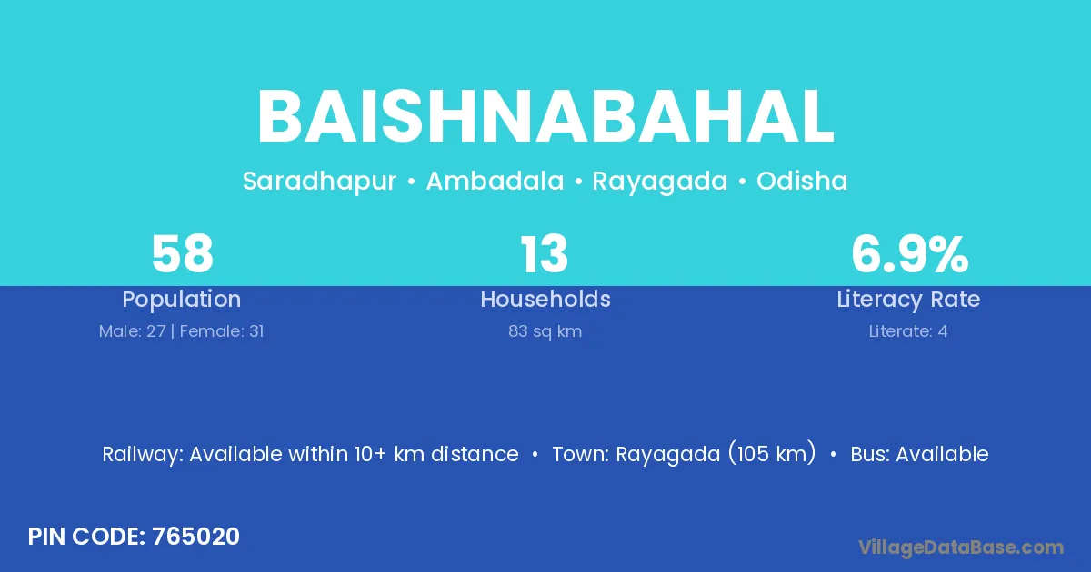 Baishnabahal village is located in the Ambadala Tehsil of the Rayagada district in Odisha .