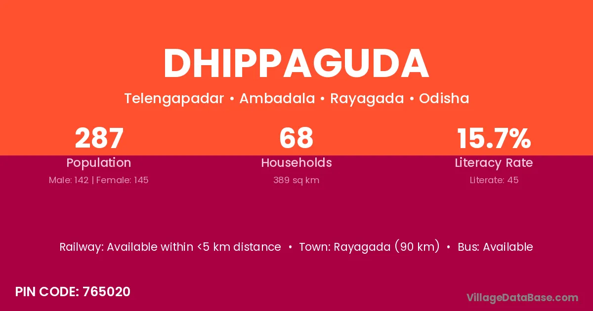Dhippaguda village has a total population of 287 people, of which 142 are males and 145 are females.