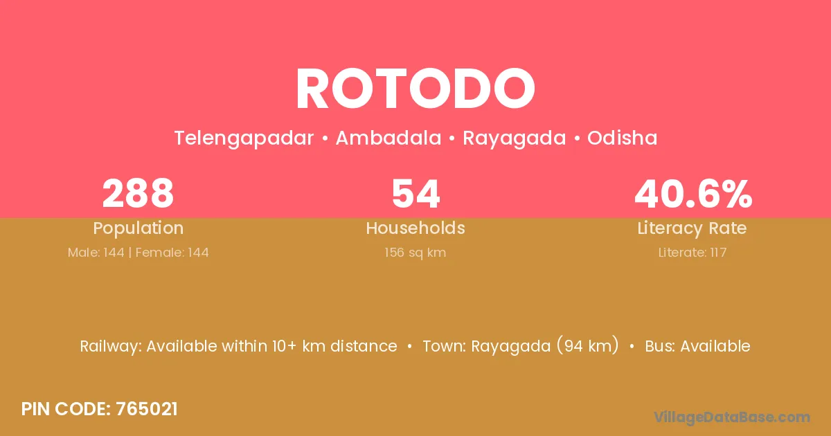 Rotodo village is located in the Ambadala Tehsil of the Rayagada district in Odisha .