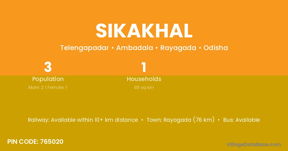Rayagada (76 km) is the nearest town to Sikakhal village for major economic activities and is located approximately 76 km away.
