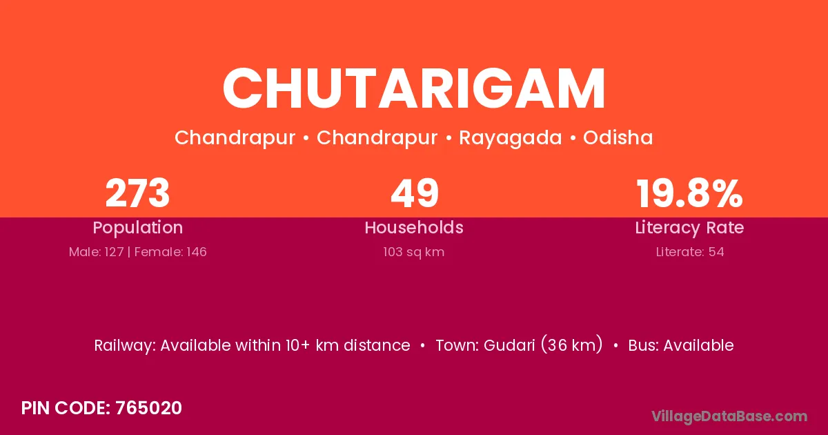 Chutarigam village is located in the Chandrapur Tehsil of the Rayagada district in Odisha .