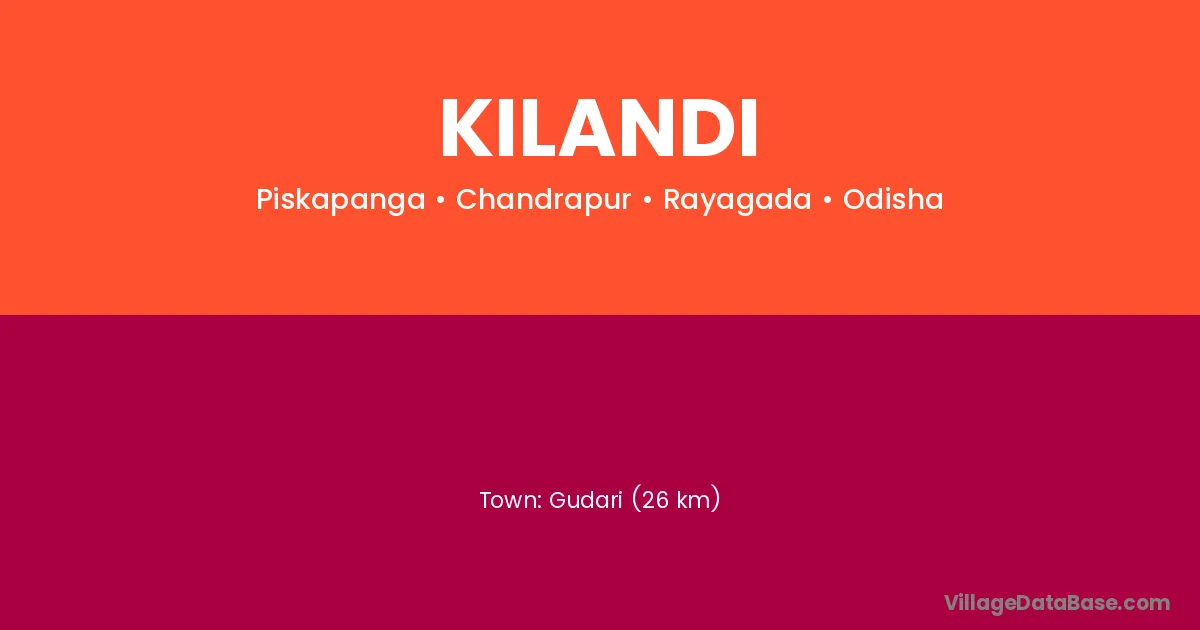 Gudari (26 km) is the nearest town to Kilandi village for major economic activities and is located approximately 26 km away.