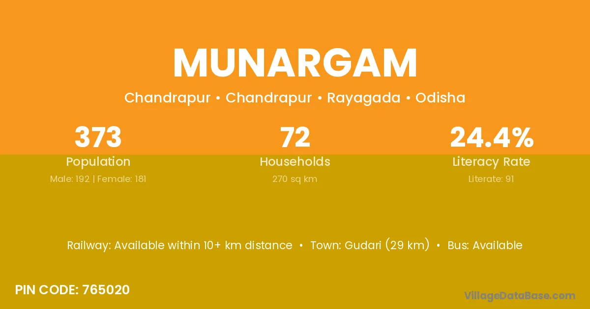 Munargam village is located in the Chandrapur Tehsil of the Rayagada district in Odisha .