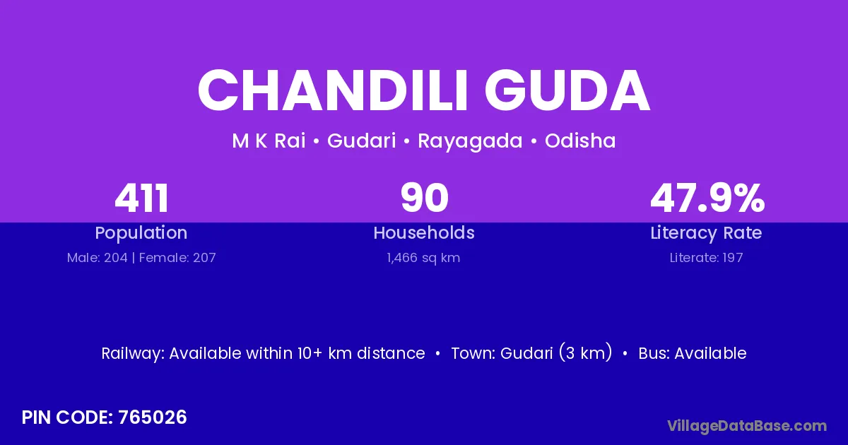 Chandili Guda village is located in the Gudari Tehsil of the Rayagada district in Odisha .