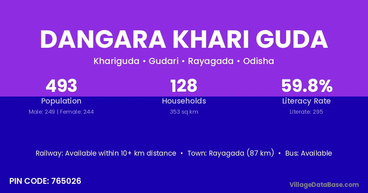 Dangara Khari Guda village has a total population of 493 people, of which 249 are males and 244 are females.