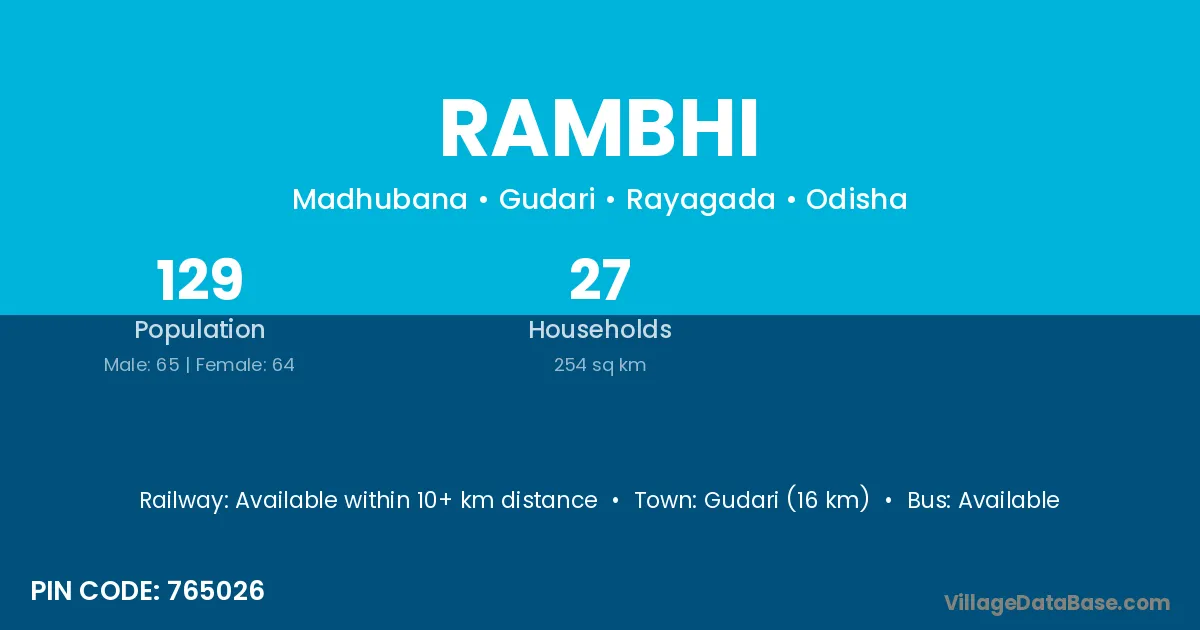 Gudari (16 km) is the nearest town to Rambhi village for major economic activities and is located approximately 16 km away.