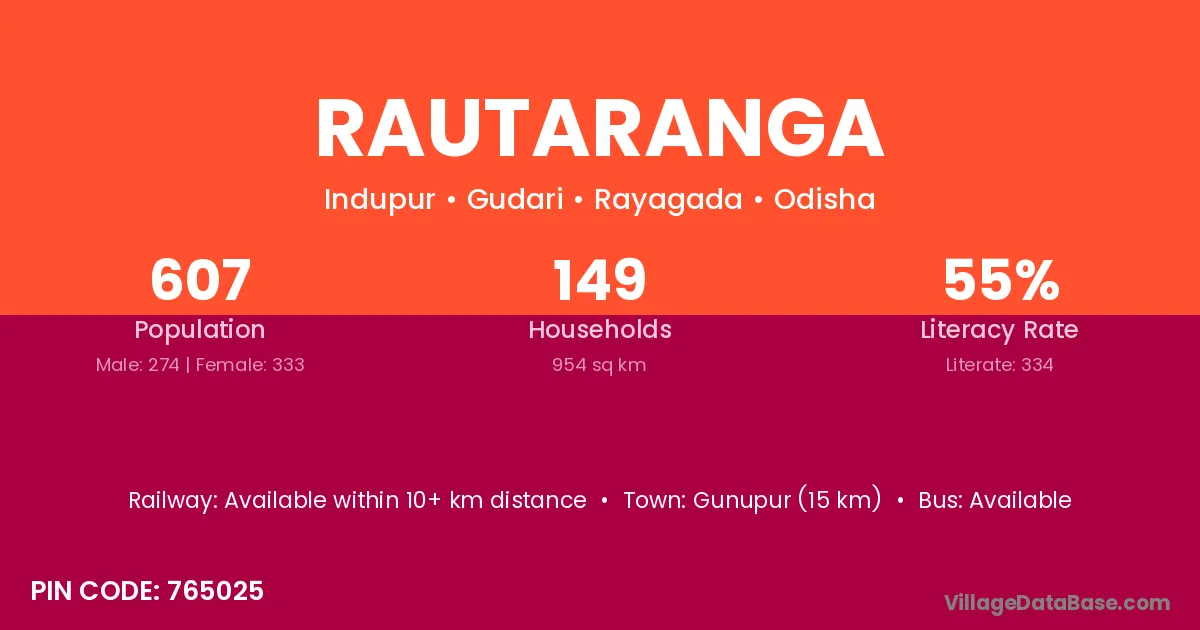 Gunupur (15 km) is the nearest town to Rautaranga village for major economic activities and is located approximately 15 km away.