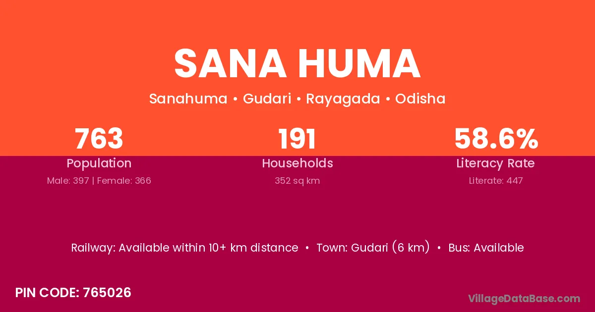Sana Huma village is located in the Gudari Tehsil of the Rayagada district in Odisha .