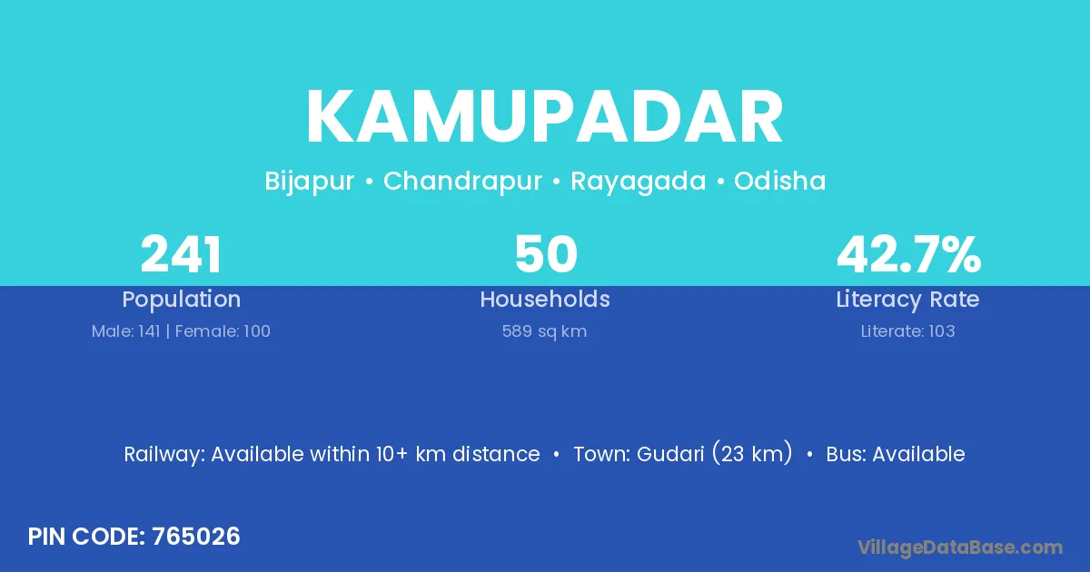 Gunupur (27 km) is the nearest town to Kamupadar village for major economic activities and is located approximately 27 km away.