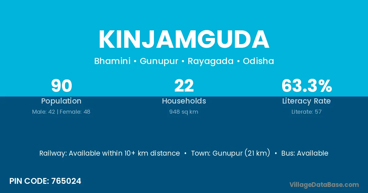 Gunupur (21 km) is the nearest town to Kinjamguda village for major economic activities and is located approximately 21 km away.