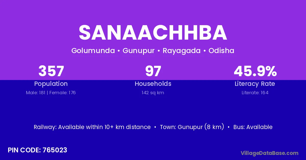 Gunupur (8 km) is the nearest town to Sanaachhba village for major economic activities and is located approximately 8 km away.
