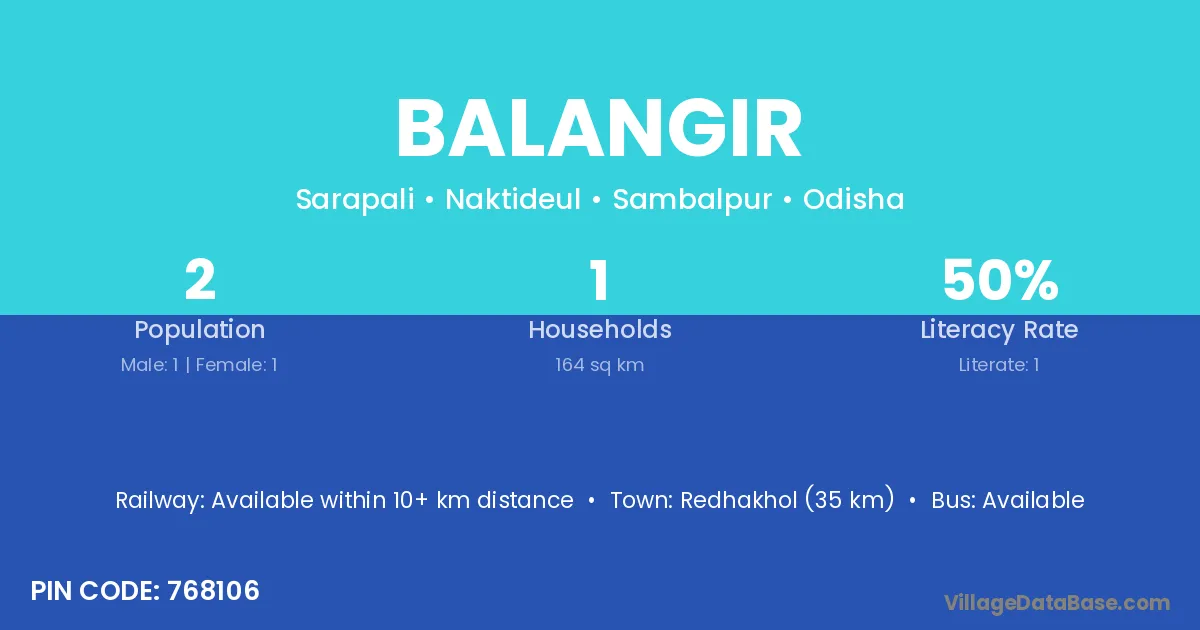 Rayagada (58 km) is the nearest town to Balangir village for major economic activities and is located approximately 58 km away.