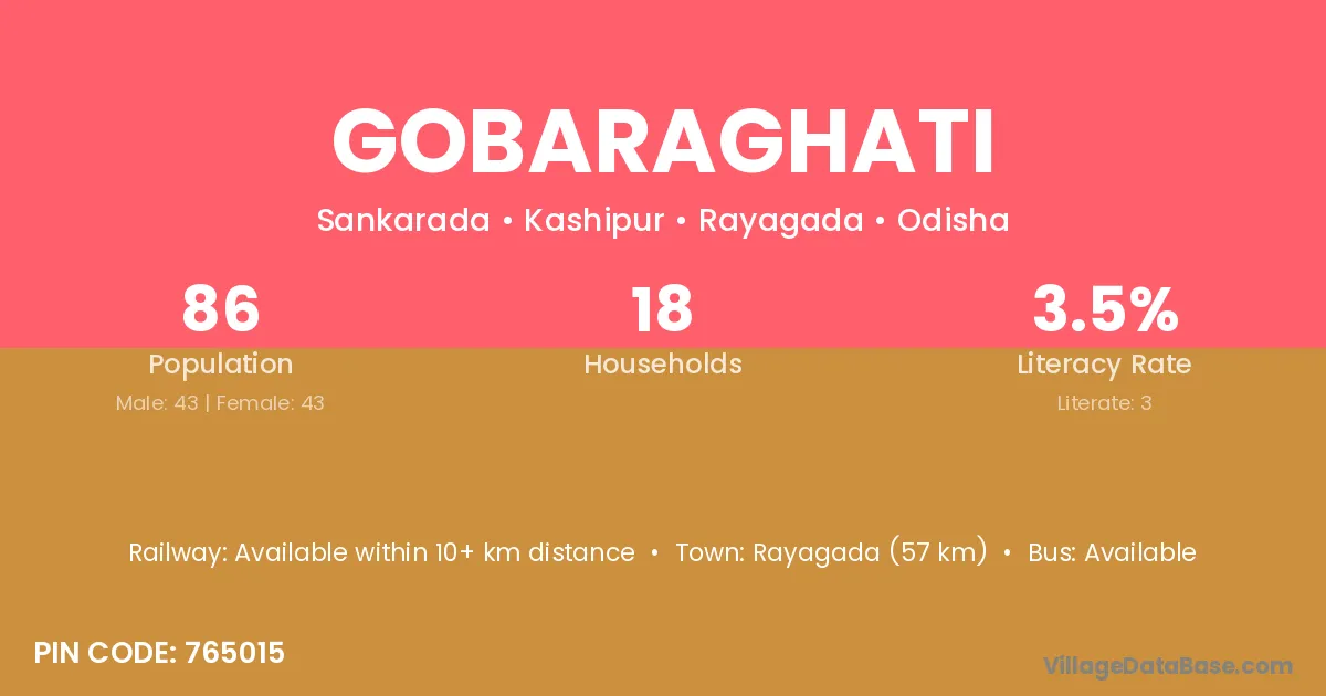 Gobaraghati village has a total population of 86 people, of which 43 are males and 43 are females.
