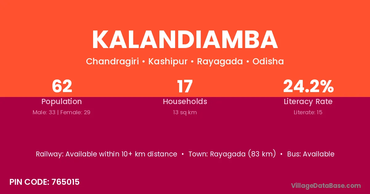 Kalandiamba village has a total population of 62 people, of which 33 are males and 29 are females.