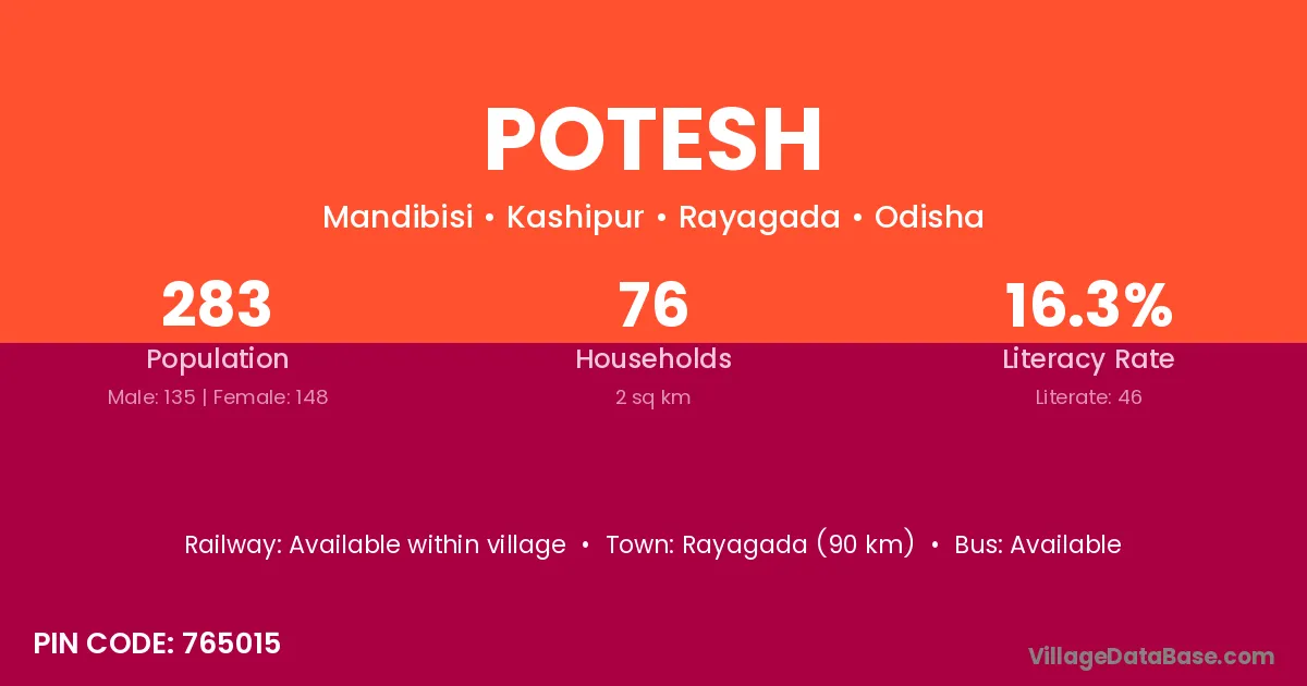 Potesh village is located in the Kashipur Tehsil of the Rayagada district in Odisha .