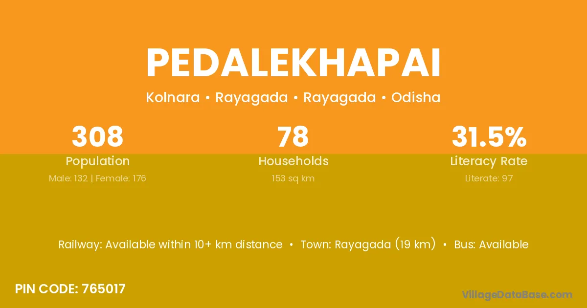 Rayagada (19 km) is the nearest town to Pedalekhapai village for major economic activities and is located approximately 19 km away.