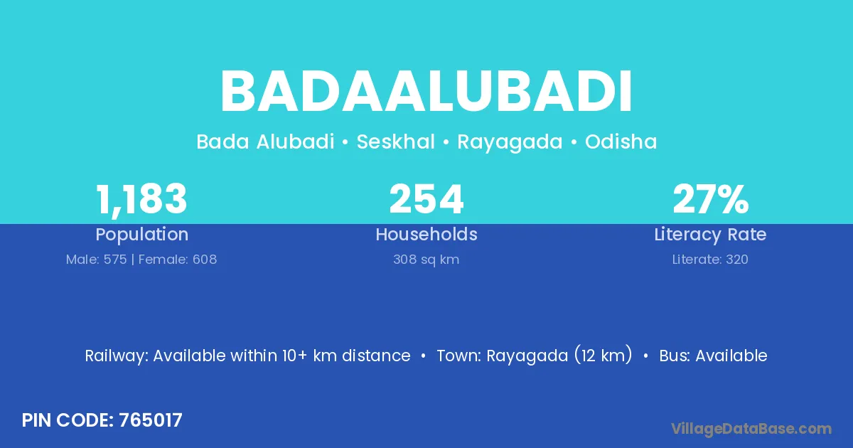 Badaalubadi village is located in the Seskhal Tehsil of the Rayagada district in Odisha .