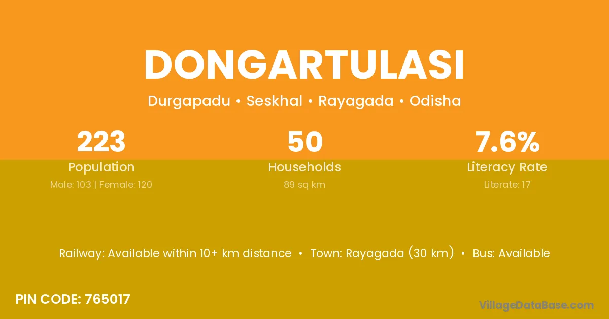 Dongartulasi village is located in the Seskhal Tehsil of the Rayagada district in Odisha .