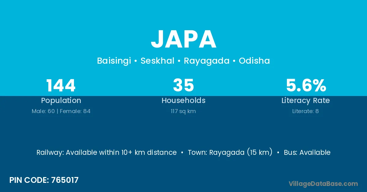 Japa village is located in the Seskhal Tehsil of the Rayagada district in Odisha .