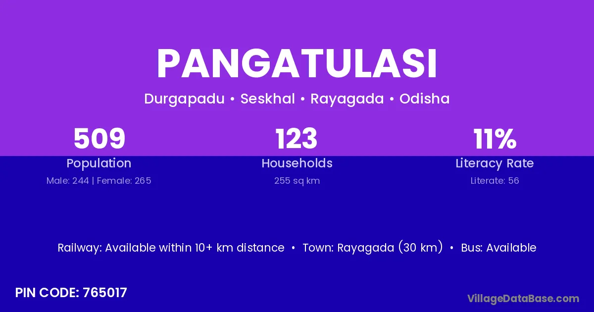 Pangatulasi village is located in the Seskhal Tehsil of the Rayagada district in Odisha .