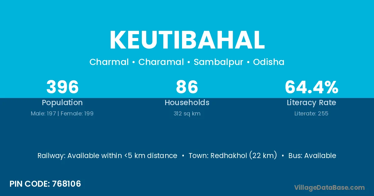 Redhakhol (22 km) is the nearest town to Keutibahal village for major economic activities and is located approximately 22 km away.