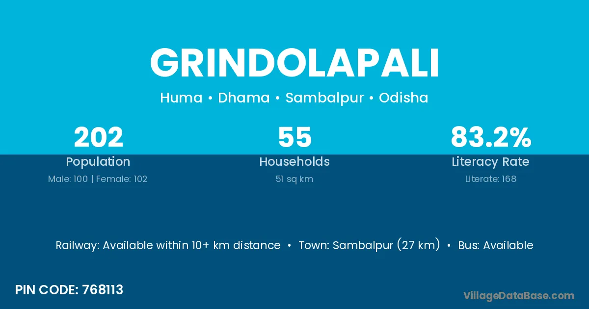 Sambalpur (27 km) is the nearest town to Grindolapali village for major economic activities and is located approximately 27 km away.