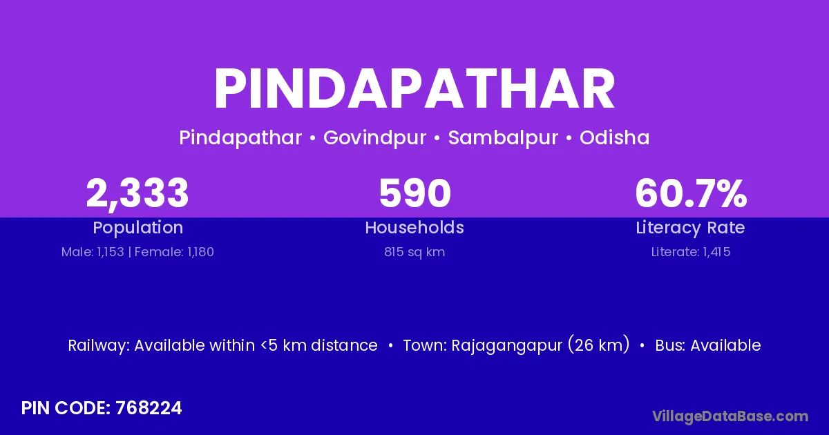 Rajagangapur (26 km) is the nearest town to Pindapathar village for major economic activities and is located approximately 26 km away.