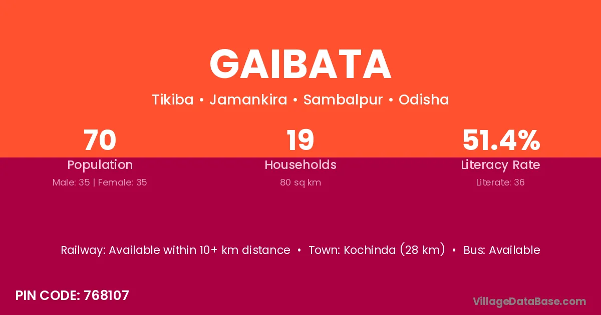 Gaibata village is located in the Jamankira Tehsil of the Sambalpur district in Odisha .