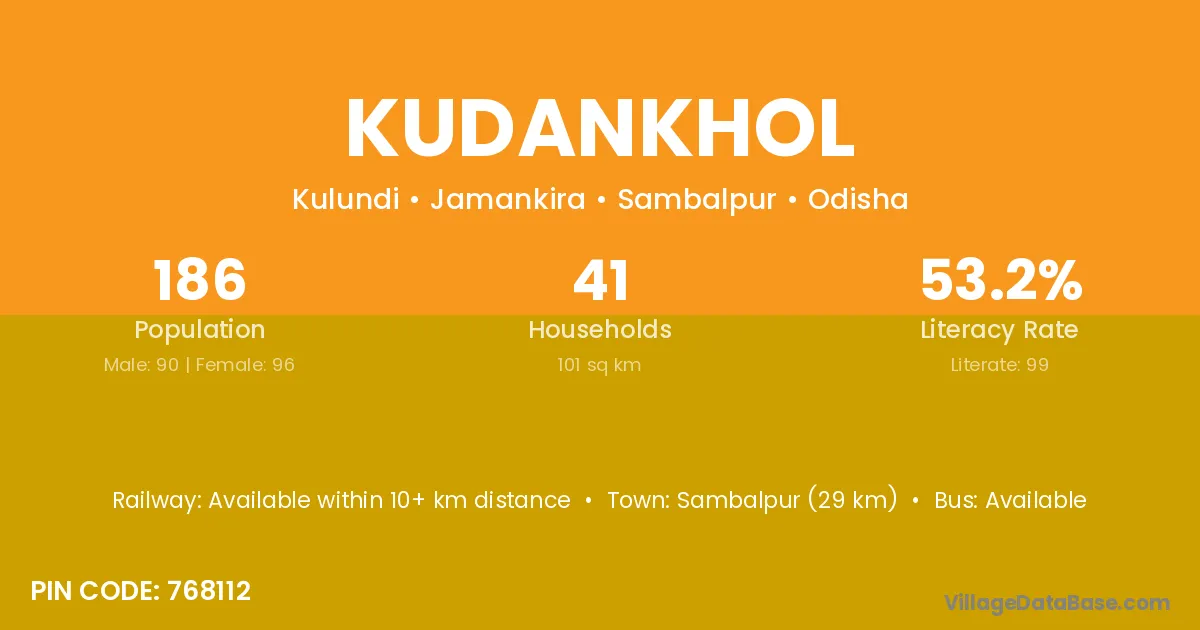 Sambalpur (29 km) is the nearest town to Kudankhol village for major economic activities and is located approximately 29 km away.