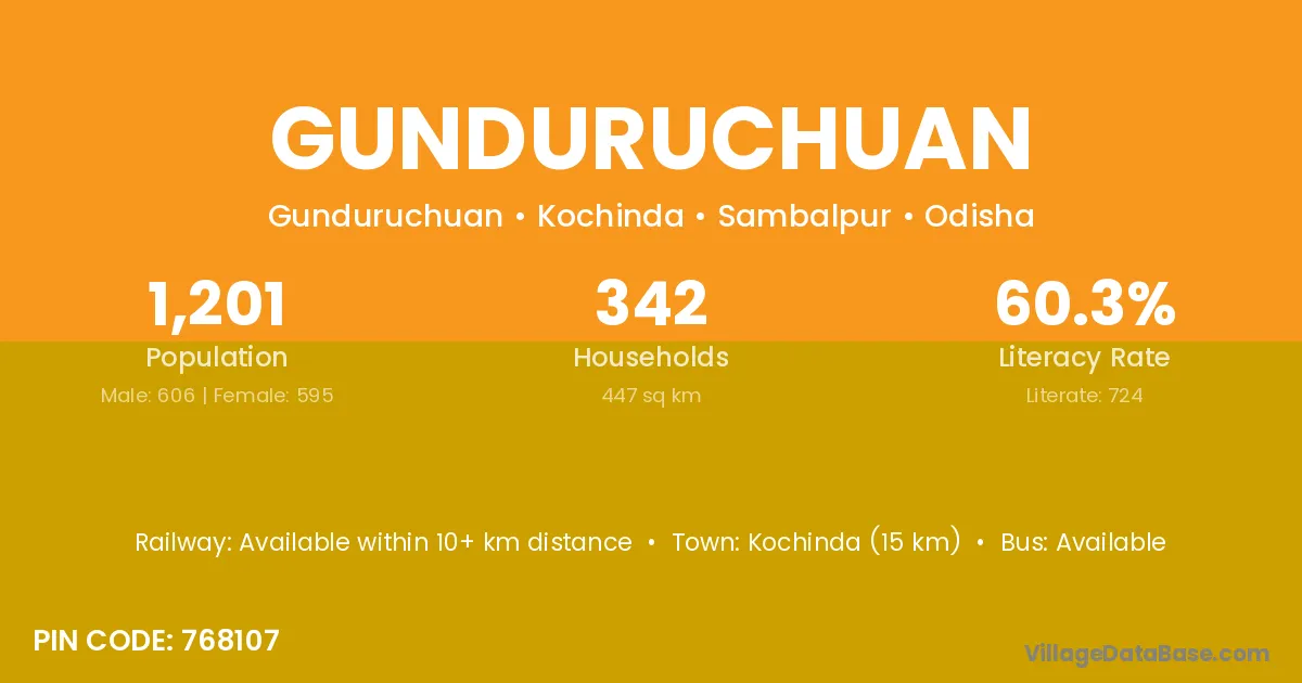 Kochinda (15 km) is the nearest town to Gunduruchuan village for major economic activities and is located approximately 15 km away.