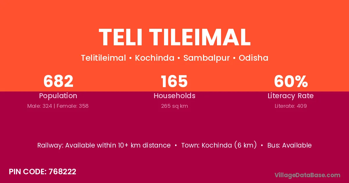 Kochinda (6 km) is the nearest town to Teli Tileimal village for major economic activities and is located approximately 6 km away.