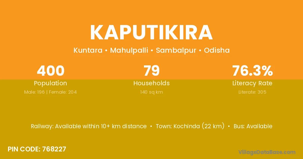 Kochinda (22 km) is the nearest town to Kaputikira village for major economic activities and is located approximately 22 km away.