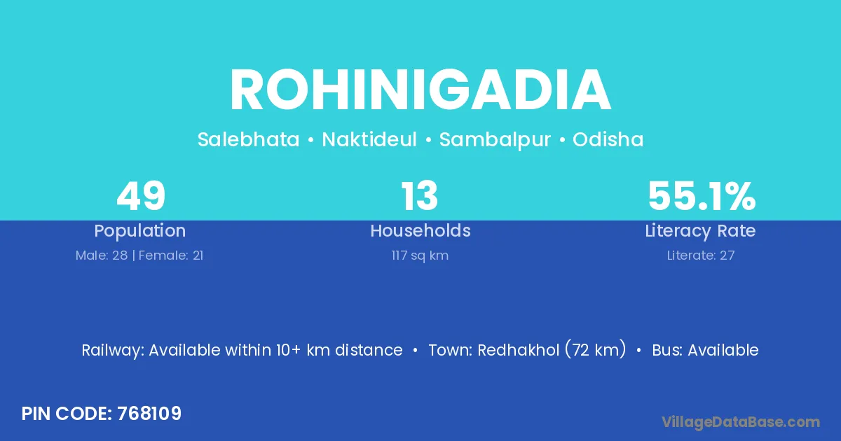 According to Census 2011 information, the village code of Rohinigadia village is 768109.