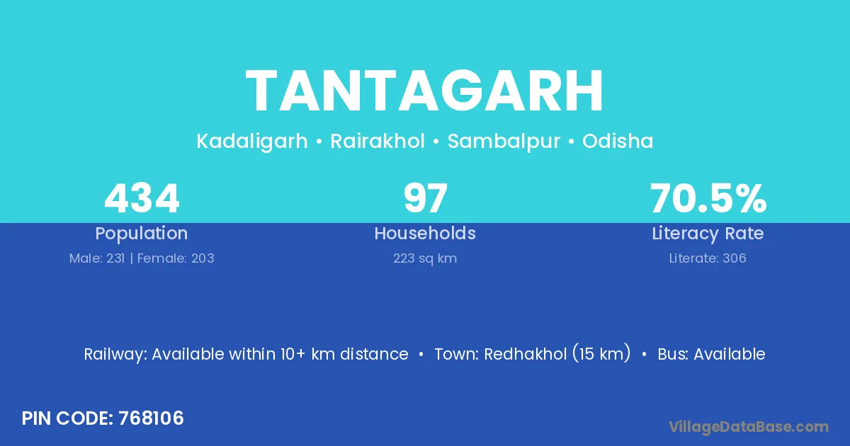 Tantagarh village has a total population of 434 people, of which 231 are males and 203 are females.