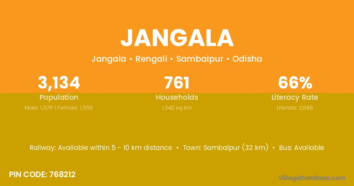 Sambalpur (32 km) is the nearest town to Jangala village for major economic activities and is located approximately 32 km away.